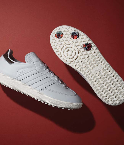The Adidas Samba shoe, returning this season from Adidas Golf. These limited-edition shoes feature water-resistant properties, high-performance recycled materials, and an added EVA cushioned midsole offering a comfortable yet classic looking shoe for your Winter wardrobe. A timeless, iconic Adidas design, these shoes are sure to help you perform to your very best on the course, whilst looking great off the course. Available in four colour-ways for the season.