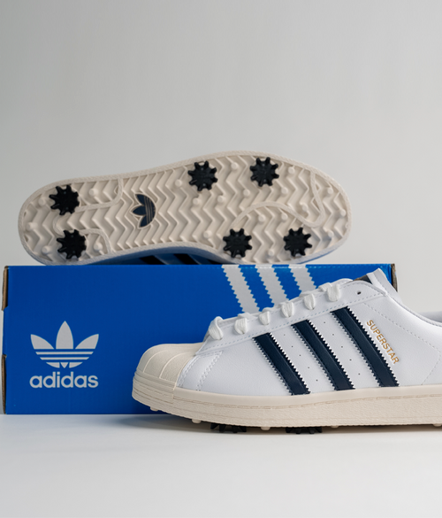 Treat your feet to the ever-[resent season after season casual footwear silhouette Superstar Golf Shoes from adidas Golf. Originally made for basketball courts in the '70s, the low-profile adidas Superstar shoe is a lifestyle staple that now features soft spikes for streetwear style on the golf course. The world-famous shell toe feature remains, providing style and protection just like it did on the basketball courts back in the day. The serrated 3-Stripes detail and adidas Superstar box logo adds OG authenticity to your look. Available this season in a classic white colourway that will throw back the years in style.